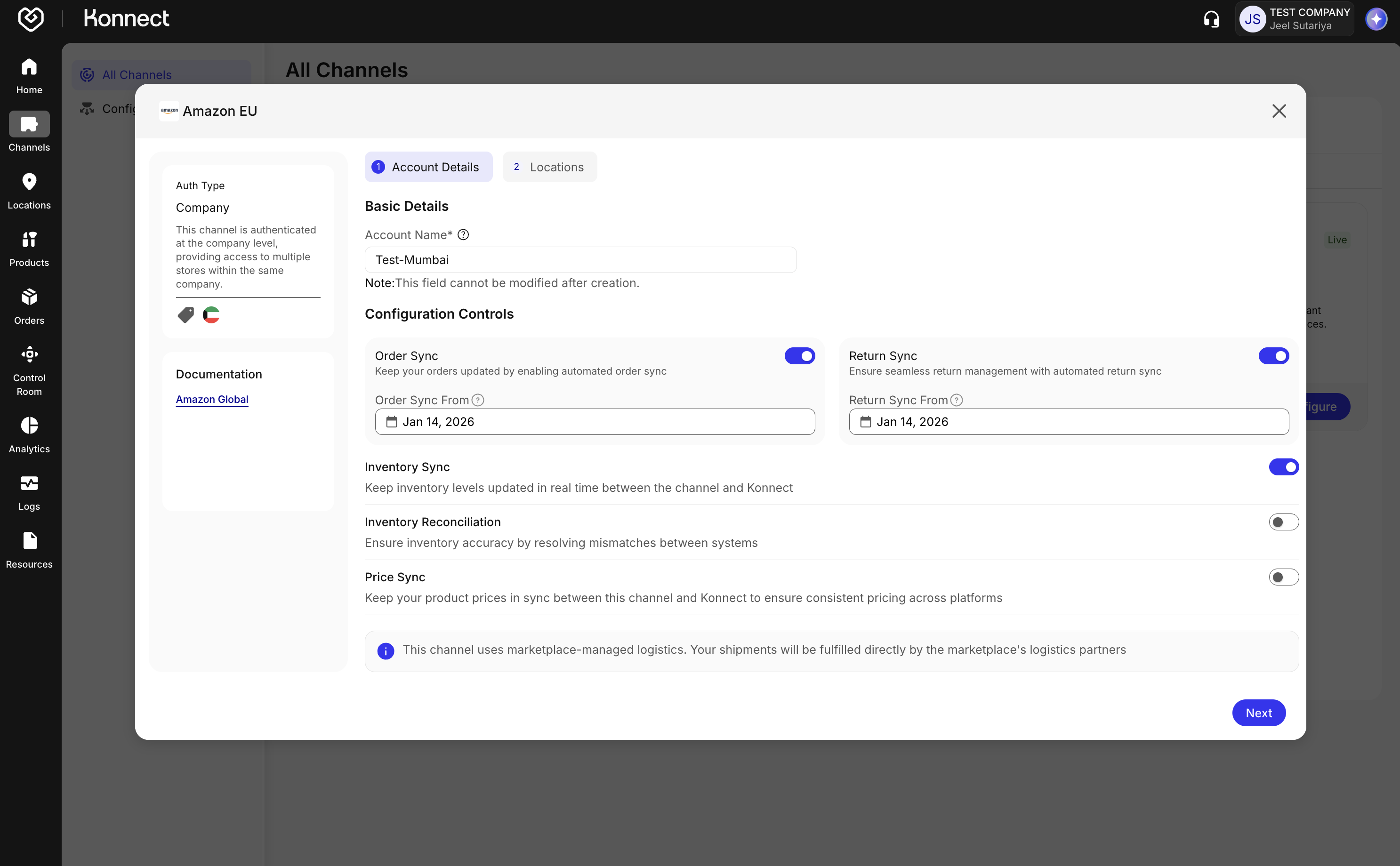 - Return Sync From: Specify the date from which returns should be synced.