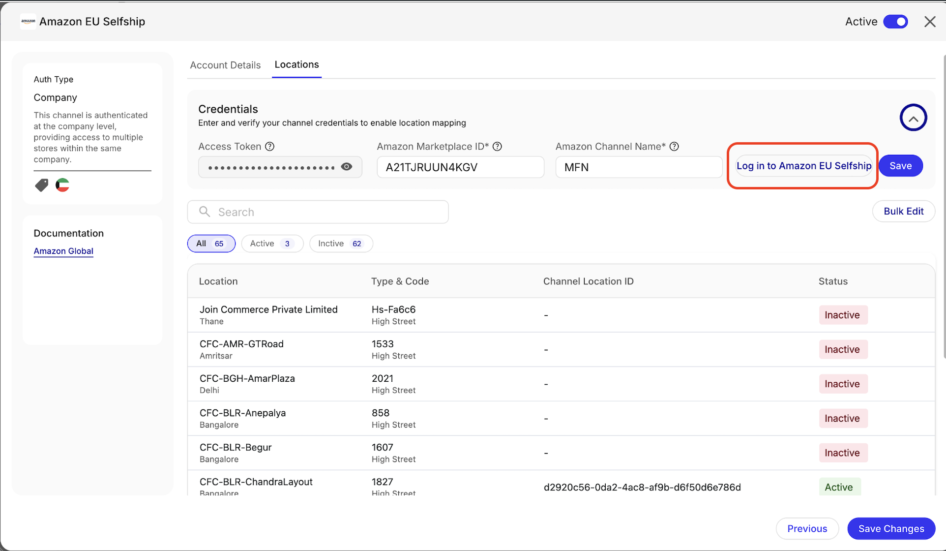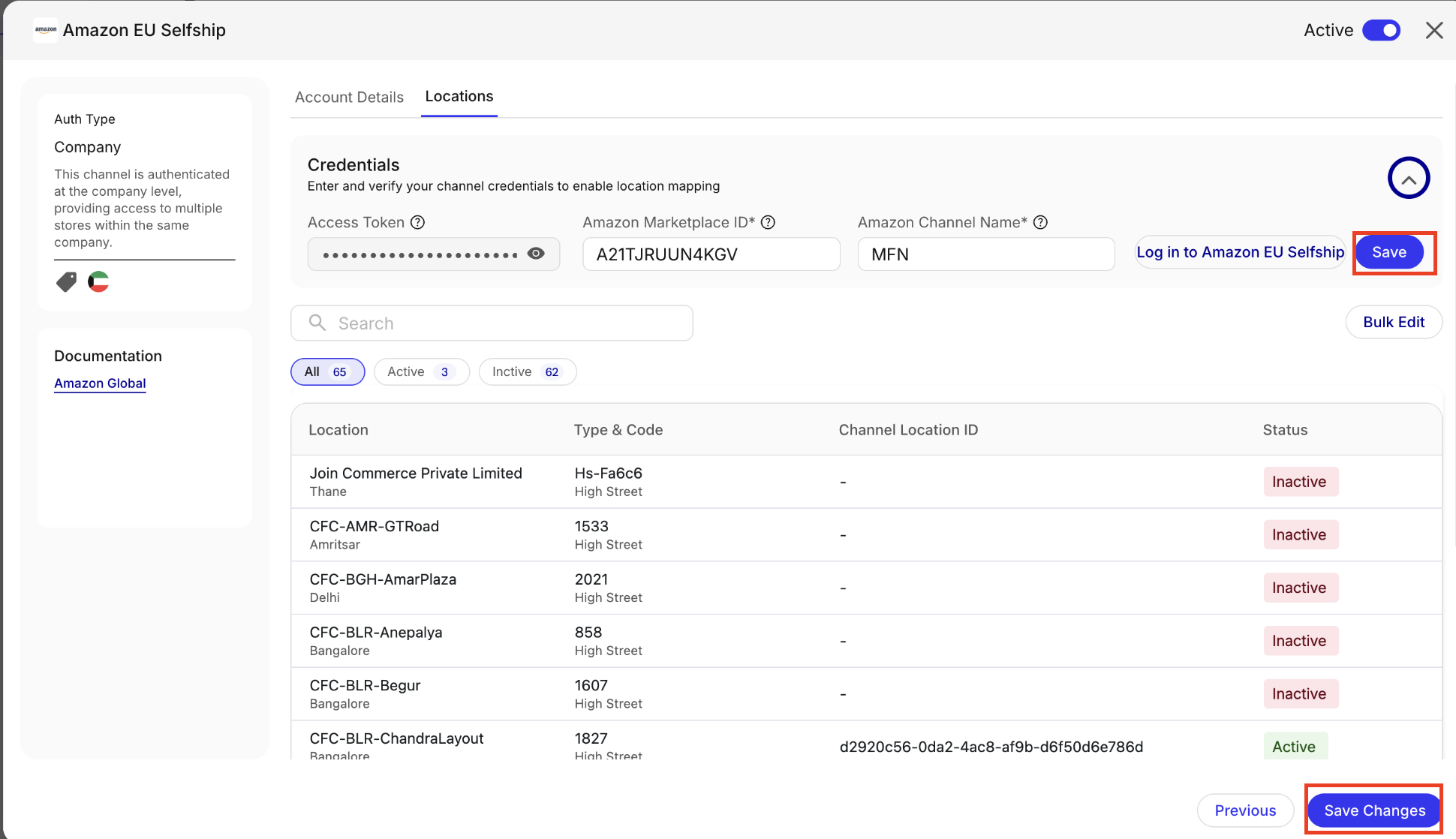 Raising Request for getting channel location id from Amazon team