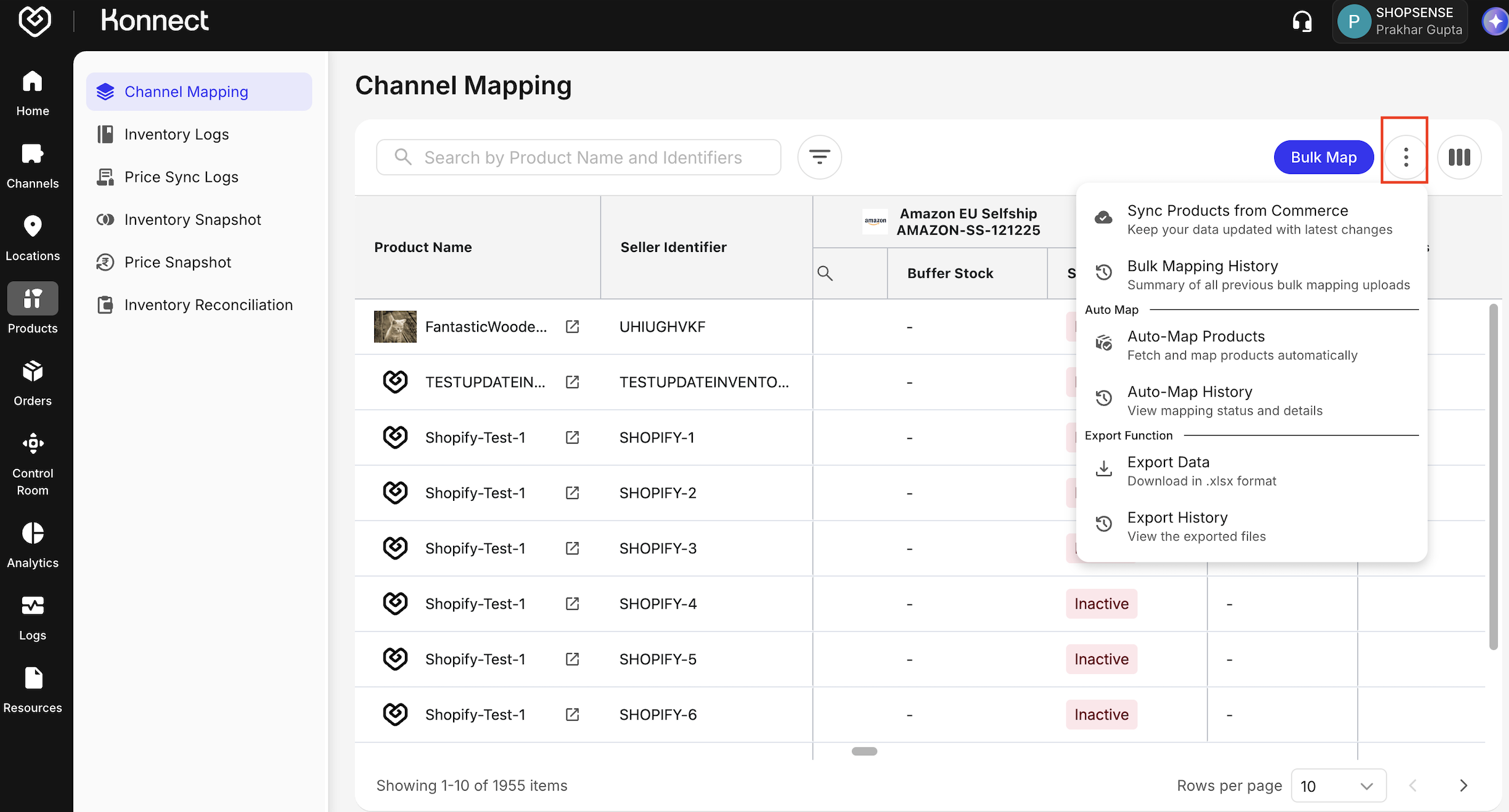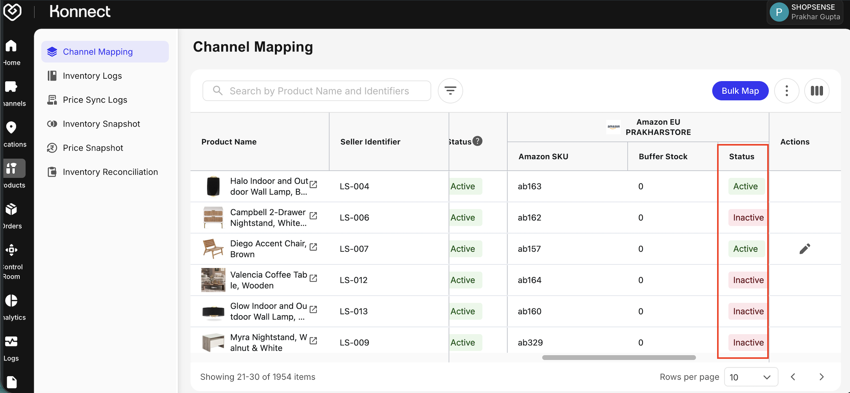- You can also perform bulk SKU mapping by uploading a CSV or XLSX file using the Bulk Map option available on the UI
