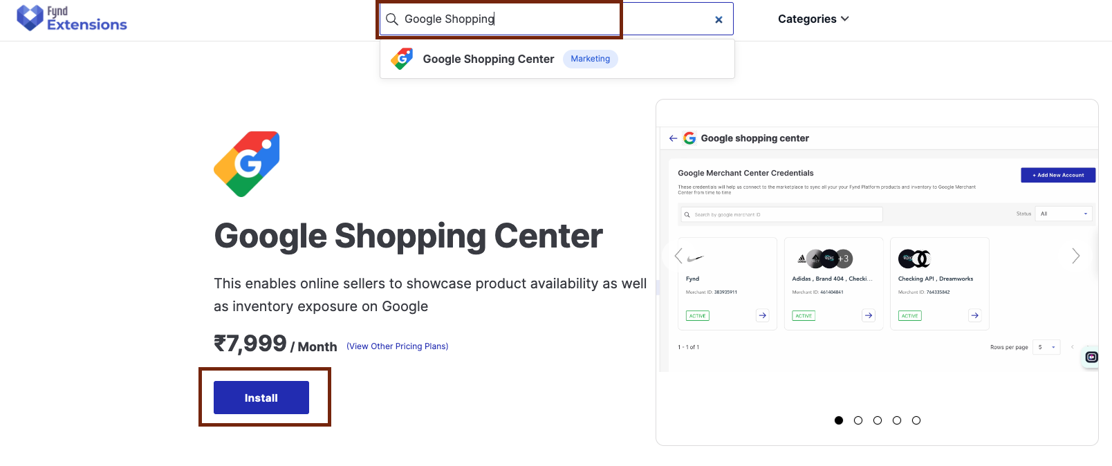 - Navigate to: Extensions → Extensions Marketplace → Search “Google Shopping”