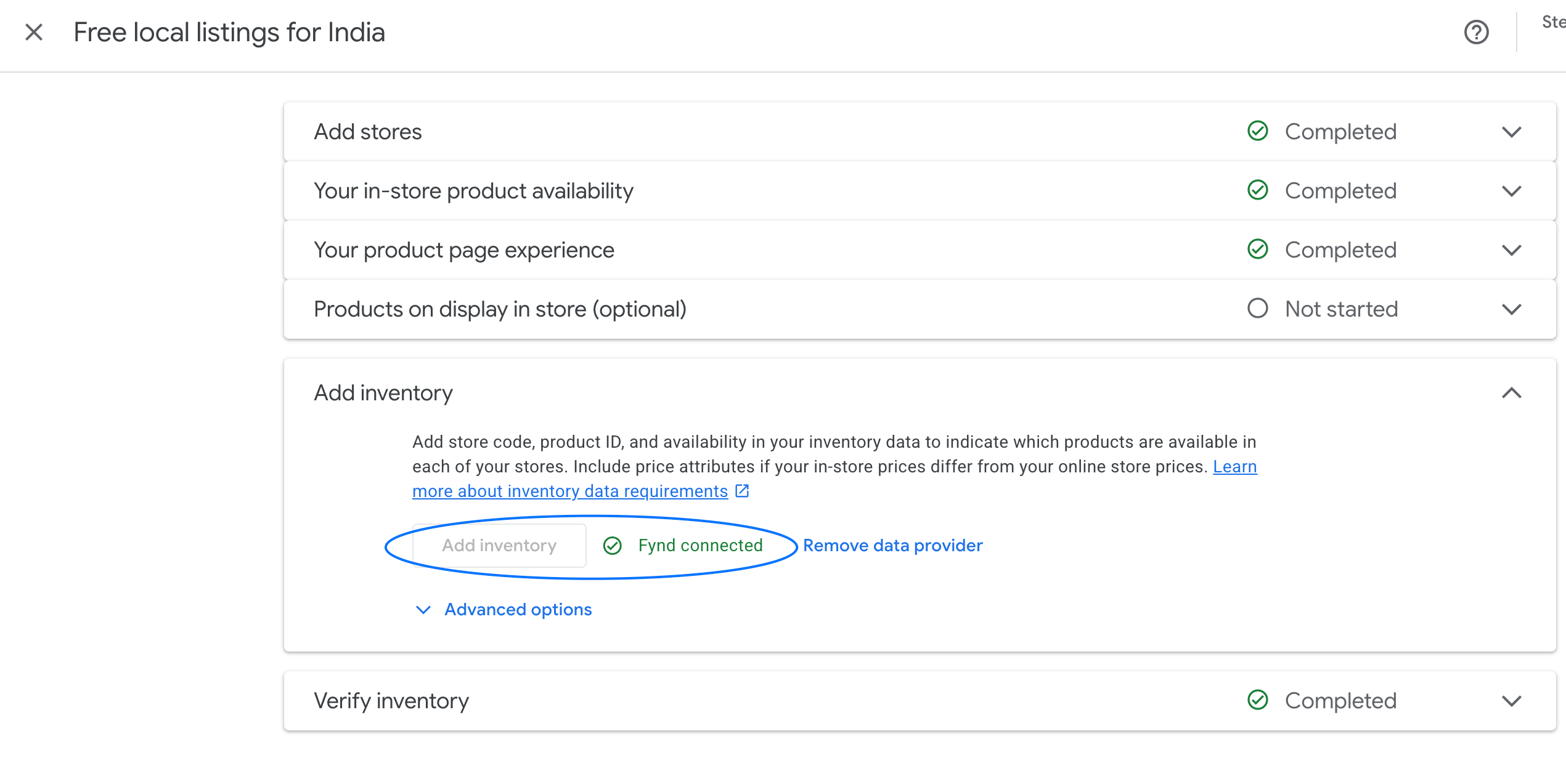 Your Fynd integration with Google Merchant Center is now verified. Inventory sync will proceed automatically via the Google Content API, keeping your local listings fresh and discoverable on Google Search, Shopping, and Maps.